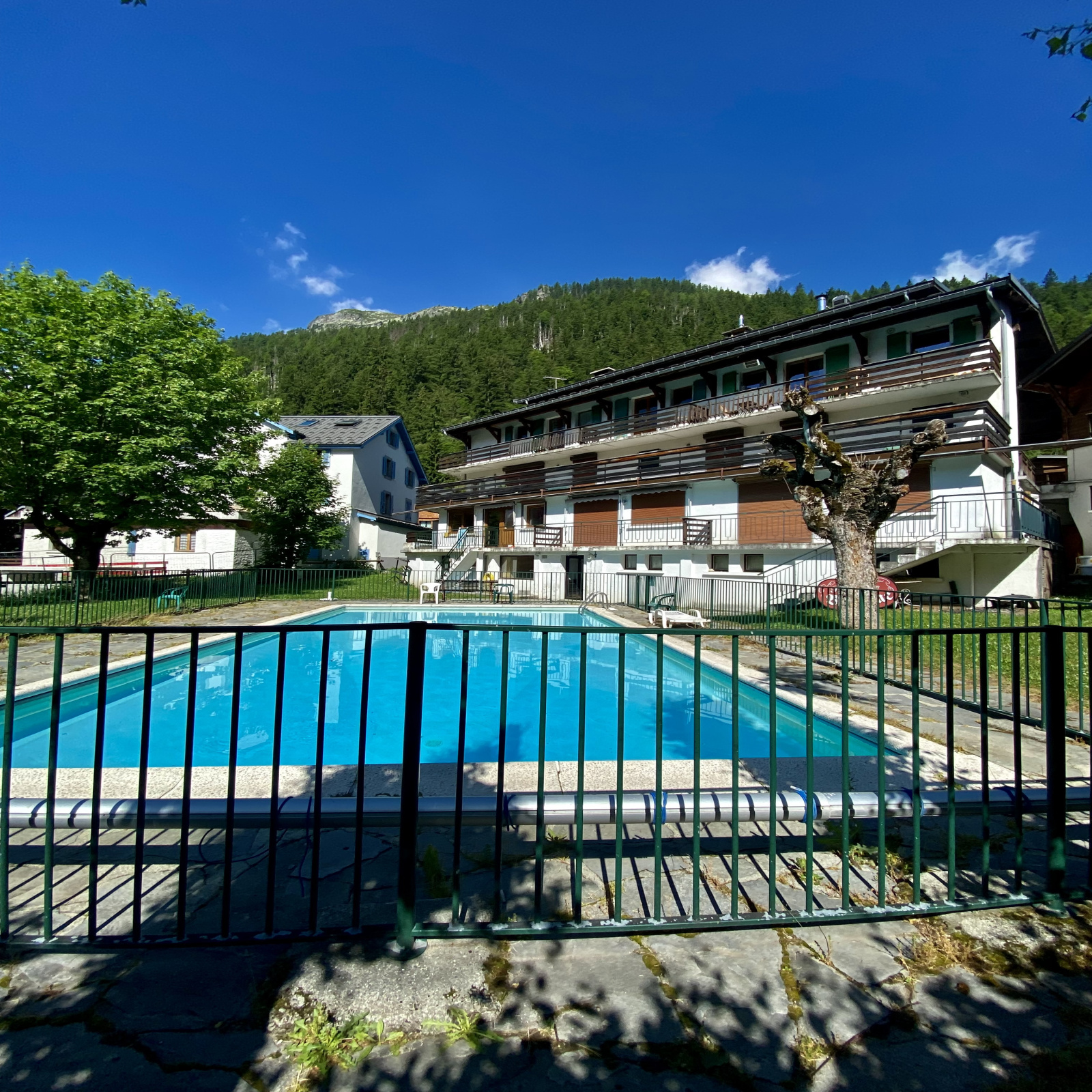 L'appartement est vendu avec un casier à skis et l'accès à la piscine extérieure de la résidence, un atout apprécié après une journée en montagne.