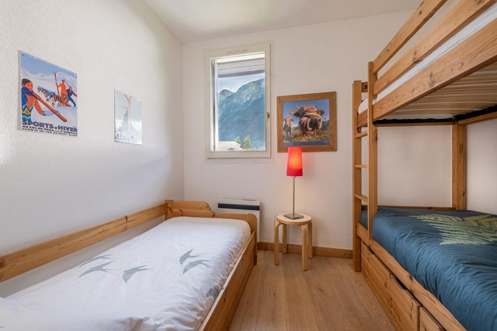 Côté nuit, deux chambres confortables offrent calme et sérénité, complétées par une salle de bains et des WC séparés pour un confort optimal au quotidien.