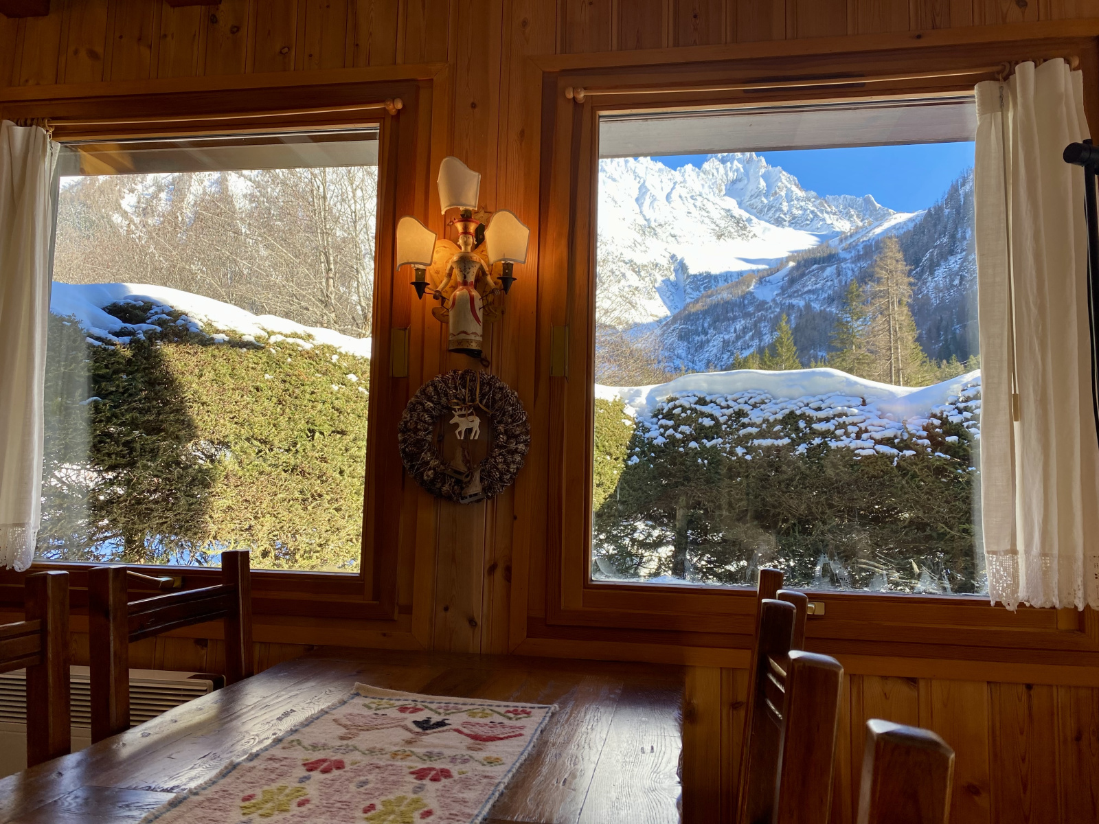 Emplacement très calme, le chalet bénéficie d'une magnifique vue sur le Mont-Blanc et le Chardonnet, charges pour le déneigement et l'entretien du jardin.